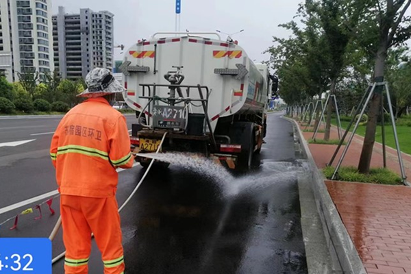 夏日炎炎,園區(qū)環(huán)衛(wèi)堅守崗位,在開展常態(tài)化道路清掃保潔的同時,持續(xù)強化重點區(qū)域的清洗和灑水頻次,巧用“四字訣”助力大氣污染防治“百日攻堅戰(zhàn)”。