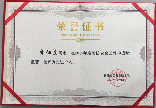 5月2日下午,宿遷市公安消防支隊(duì)召開了“全市一級(jí)消防安全重點(diǎn)單位“工作會(huì)議,建發(fā)公司物業(yè)部安防主管李佃左同志在2017年消防安全工作中成績顯著,被評(píng)為先進(jìn)個(gè)人。