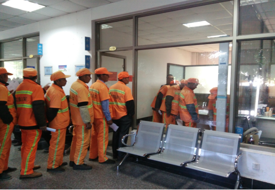晴天一身灰,雨天一身泥,由于工作的特殊性,環(huán)衛(wèi)工人一年四季與垃圾、煙塵打交道,身體健康受到一定程度的影響。為了讓城市“美容師”更好地了解自己的健康狀況,擁有更加健康的體魄,在市總工會的統(tǒng)一安排下,園區(qū)的精心組織下,5月16日,園區(qū)130多名環(huán)衛(wèi)工人統(tǒng)一參加了免費體檢。