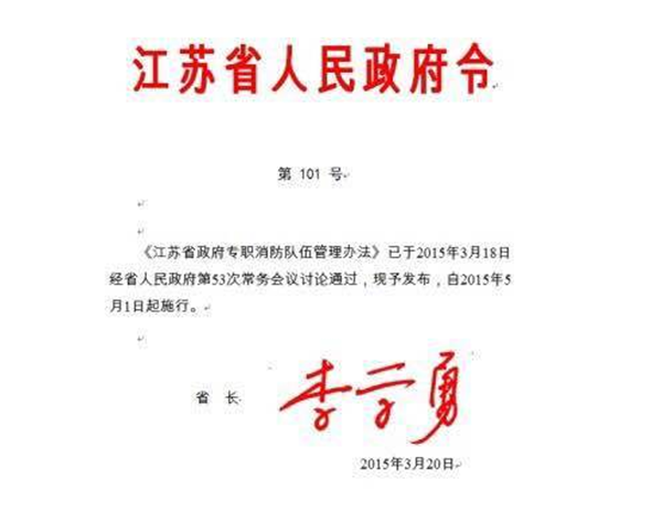 近日,江蘇省省長李學(xué)勇主持召開省政府第53次常務(wù)會議,審議通過了《政府專職消防隊(duì)伍管理辦法》(以下簡稱《辦法》)。自2015年5月1日起正式施行。